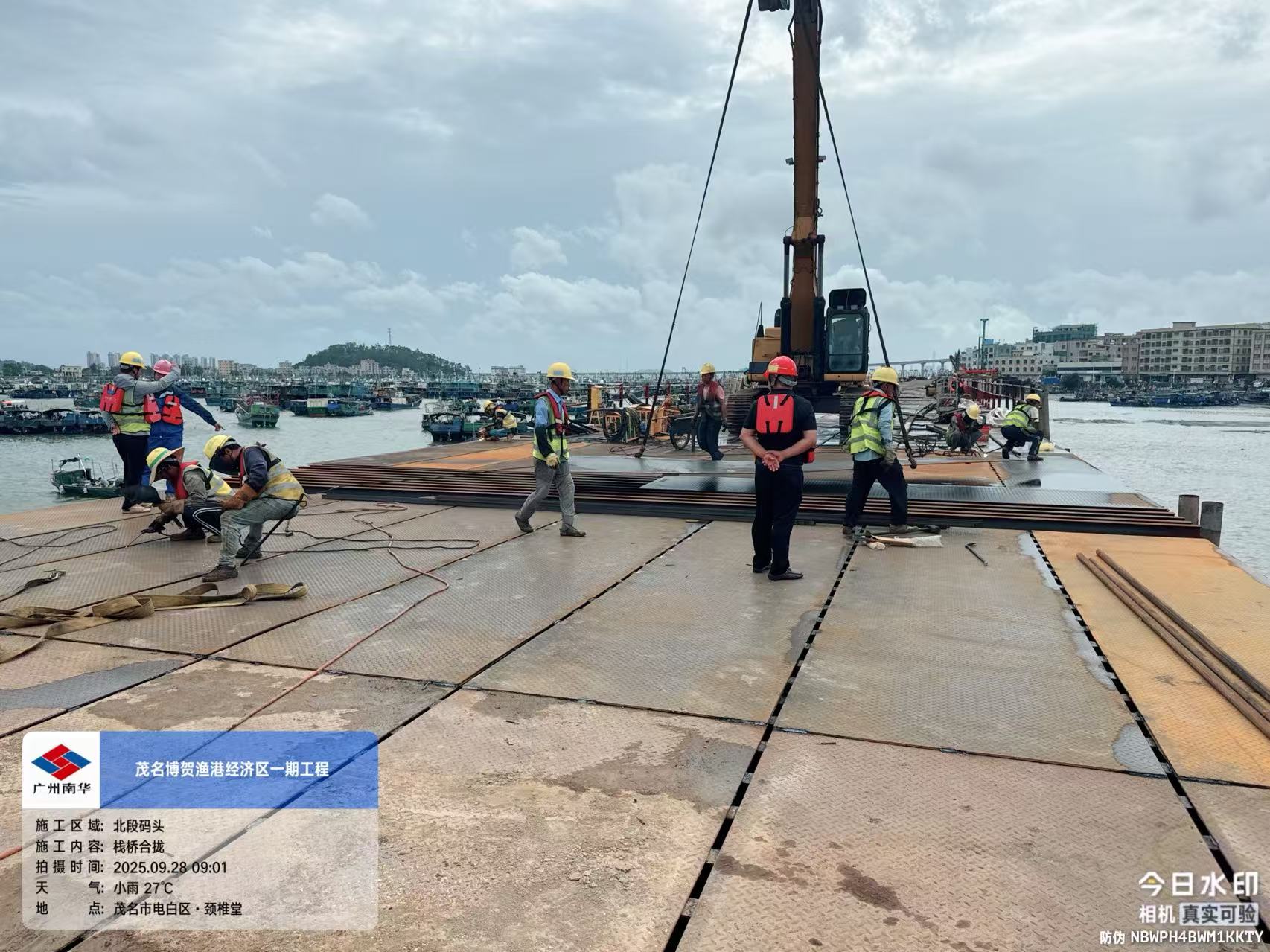 金秋十月,丹桂飘香。在喜迎中华人民共和国成立76周年之际,茂名博贺渔港经济区一期工程建设现场传来捷报——码头主栈桥钢平台于国庆前夕顺利合拢,为节日献上了一份实实在在的“建设厚礼”。