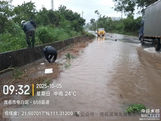 与此同时,养护中心抢险队优化力量配置,采取“兵分两路”工作模式,对茂名港大道、S291省道、辖区国道及X848县道等展开全域巡查,及时发现并疏通积水点,协同清理国道沿线倒伏树木,快速消除多处道路安全隐患,保障了道路基础通行条件。