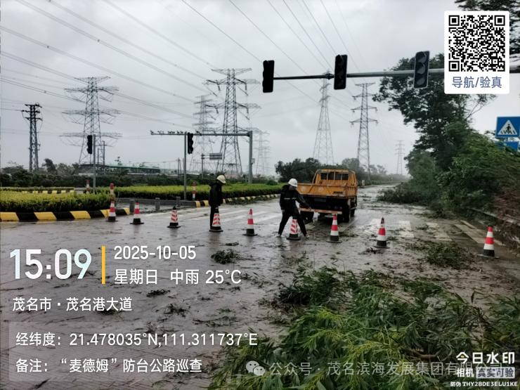 今年第21号台风“麦德姆”强势来袭,为茂名滨海新区带来严峻风雨考验。在滨海新区的部署和茂名滨海发展集团统一指挥下,集团道路养护中心抢险队(以下简称养护中心抢险队)迅速响应、昼夜坚守,在防汛防风一线构筑起坚实的“道路安全屏障”,充分彰显了高效的应急处置能力。