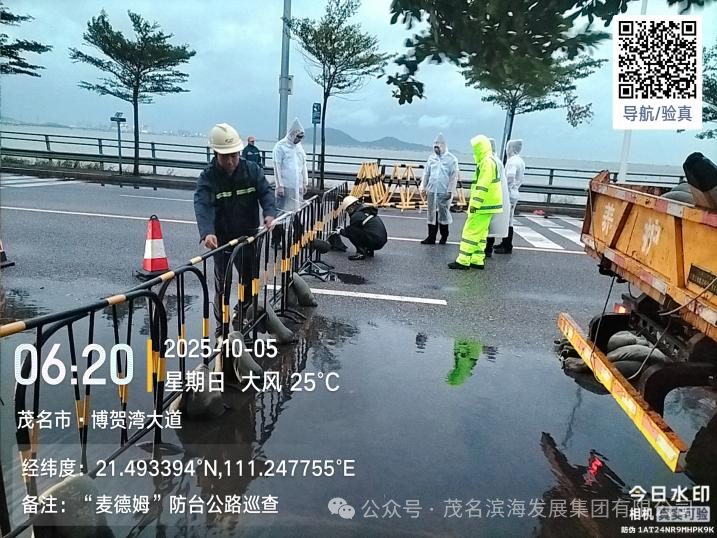 台风影响尚未全面显现,防御工作已率先展开。10月5日凌晨5时33分,养护中心抢险队已按滨海新区要求冒雨集结为封闭博贺湾大桥做准备。历经1小时17分钟的紧张作业,当日6时50分顺利完成博贺湾大桥封闭任务,有效规避了台风期间桥面通行风险,为后续抢险救灾工作争取了关键时间窗口。
