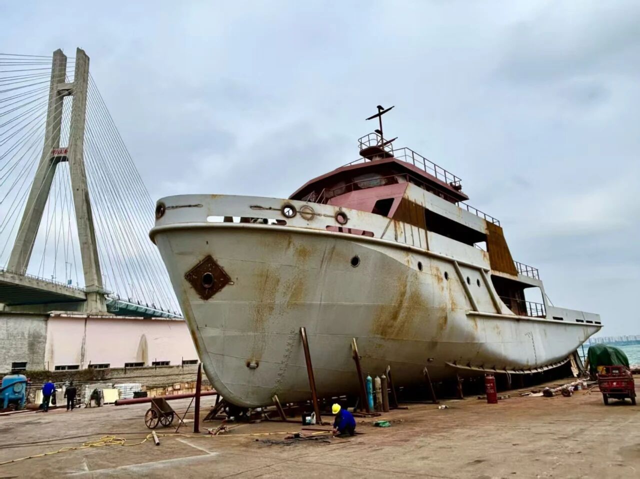 考察期间,调研组深入了解该集团多功能渔业辅助船的设计理念与功能集成。该船舶集生产辅助、生活服务、起重作业、冷链储运于一体,配备三层上层建筑,集成会议室、餐厅、乘员舱等设施,能满足海上作业人员的多方面需求。其甲板后部设置的起重设备适用于多种海上施工与起吊作业,而舱内特别增设的具备冷冻设施的鱼舱,有效提升了渔获物保鲜储运能力,体现了现代渔业装备向高效、节能、多功能方向的升级趋势。其设计不仅提升了海上作业综合保障能力,也为茂名完善海洋牧场配套设施、构建陆海联动服务体系提供了新思路。